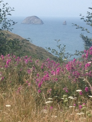 I’ve gone about ten miles and am passing this resort which goes on for miles called “Sea Ranch”. These are individual houses which one can rent. After a while I say to myself out loud “Where are all these sea ranch people getting their expresso? Are they all bringing their own machines?”