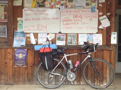 I met up with Derek again at Bodega. He got his bike fixed but was going to end in SF instead of LA as he'd had enough.