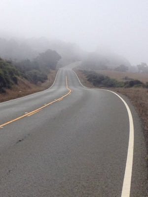 Parts of the road are so misty that you can not see over the cliff. You can hear the ocean but you can’t see it. All you can see is spaceless nothing like a chasm of void.