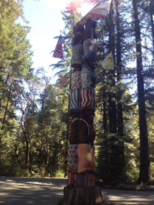 This totem plow is forty feet high and it was carved by one man and a chainsaw while the tree was standing! They built a scaffold around it for him to do this. There are taller poles but those are carved lying down and then stood up. This is the largest in the world carved this way. It is a massive happy thing. There is a lot of info about it except the name of the guy who made it.