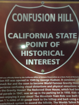 Next I went to “Confusion Hill” where I spent a lot of time. It is like the “Mystery Spot” outside of Santa Cruz. It’s a place where gravity and the normal North/South magnetic pole don’t operate as they usually do.